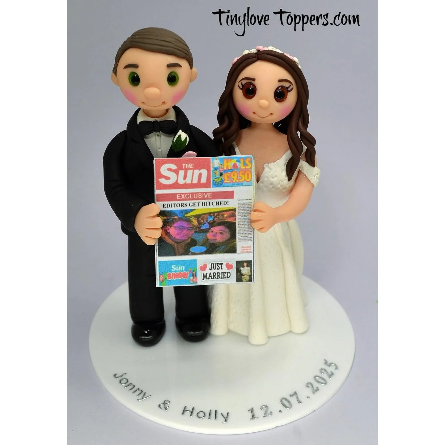 If you're looking for the personal touch for your wedding cake, I can create an adorable copy of the wedding couple whether you require a bride and groom wedding cake topper, or same sex couple wedding cake topper.