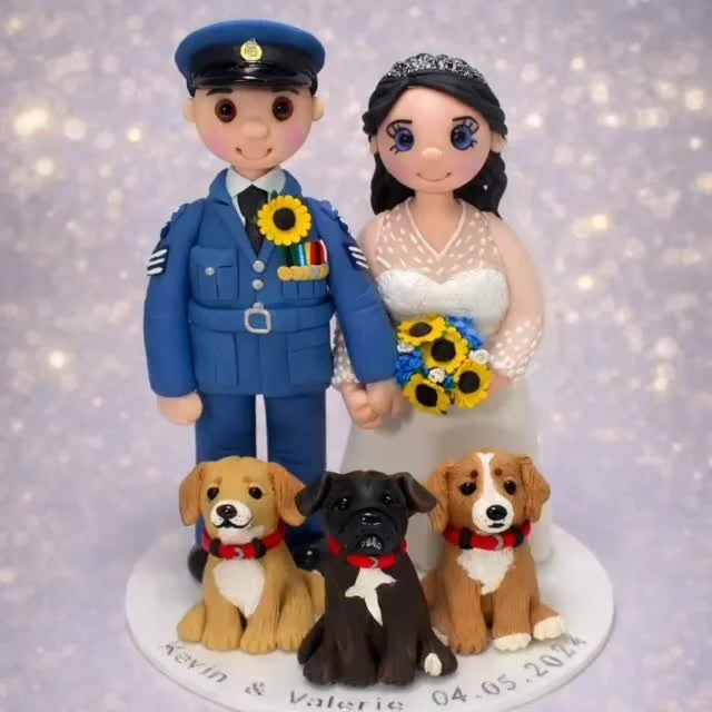 Simply contact me with a rough idea of how you would like your topper. I will then confirm availability, discuss your design, and provide the cost based on your requirements. Once you’re happy to proceed and a deposit has been paid, I’ll send you a questionnaire so you can provide photos and details to personalise your topper. Each piece is sculpted by hand in wedding-date order, carefully packaged, and dispatched ahead of your big day. For full pricing and ordering information, please follow the link below.